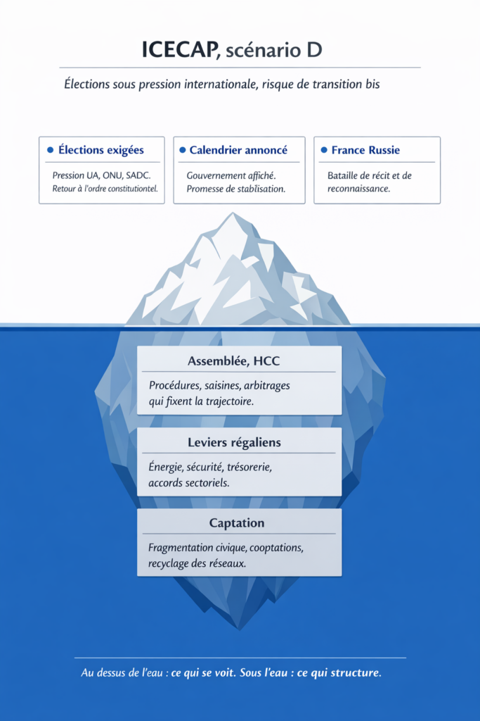 Parce que le pouvoir actuel est juridiquement encadré mais politiquement contraint, la transition a créé un espace de vulnérabilité où l’essentiel se décide souvent en dehors de la scène officielle. Dans ce type de moment, l’enjeu n’est pas seulement de savoir qui gouverne, mais qui fixe la trajectoire. Le calendrier électoral, les conditions de sécurité, l’accès à l’énergie, les accords économiques, le contrôle du récit, la reconnaissance internationale. Ce sont ces paramètres qui rendent une transition réversible ou irréversible.