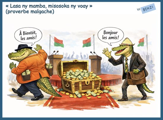 Le spectacle peu reluisant que nous offrent les politiciens depuis des décennies souligne une réalité : seuls les noms et les photos changent d’un régime à l’autre, mais les mentalités qui sous-tendent les comportements et les pratiques restent les mêmes. Quelquefois, en pire, car les nouveaux venus ont appris comment faire plus vite et plus fort que ceux à qui ils succèdent : comme dit le proverbe malgache, on a souvent une arrivée de crocodile qui suit le départ de l’alligator. Les litanies et dénégations “avoahay ny porofo” en réponse systématique ne sont en rien une garantie d’intégrité.
